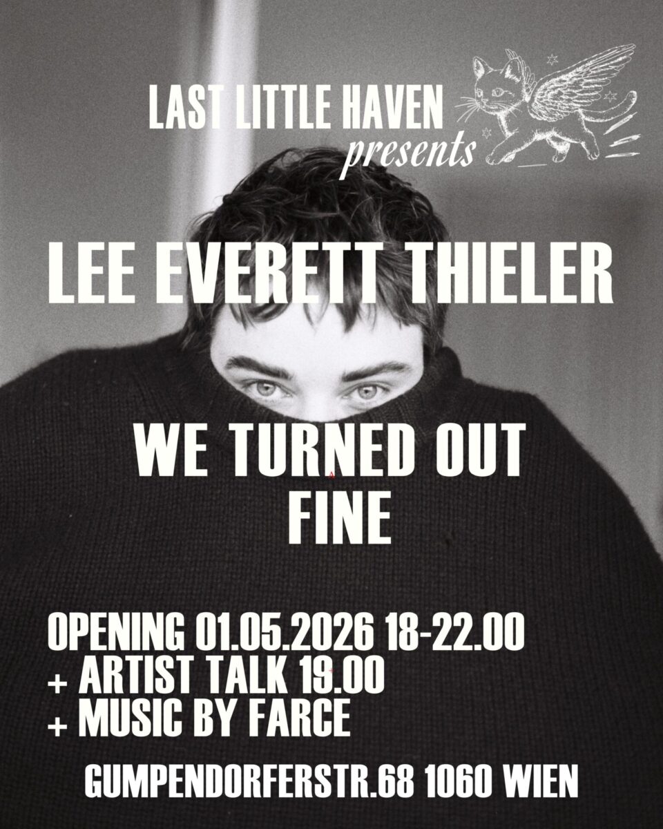 The exhibition opens 01.05.2026 from 18-22:00 (artist talk at 19:00) and is on view until 22.05.2026 each Friday from 18-22:00. Exhibition special: music by Farce.
