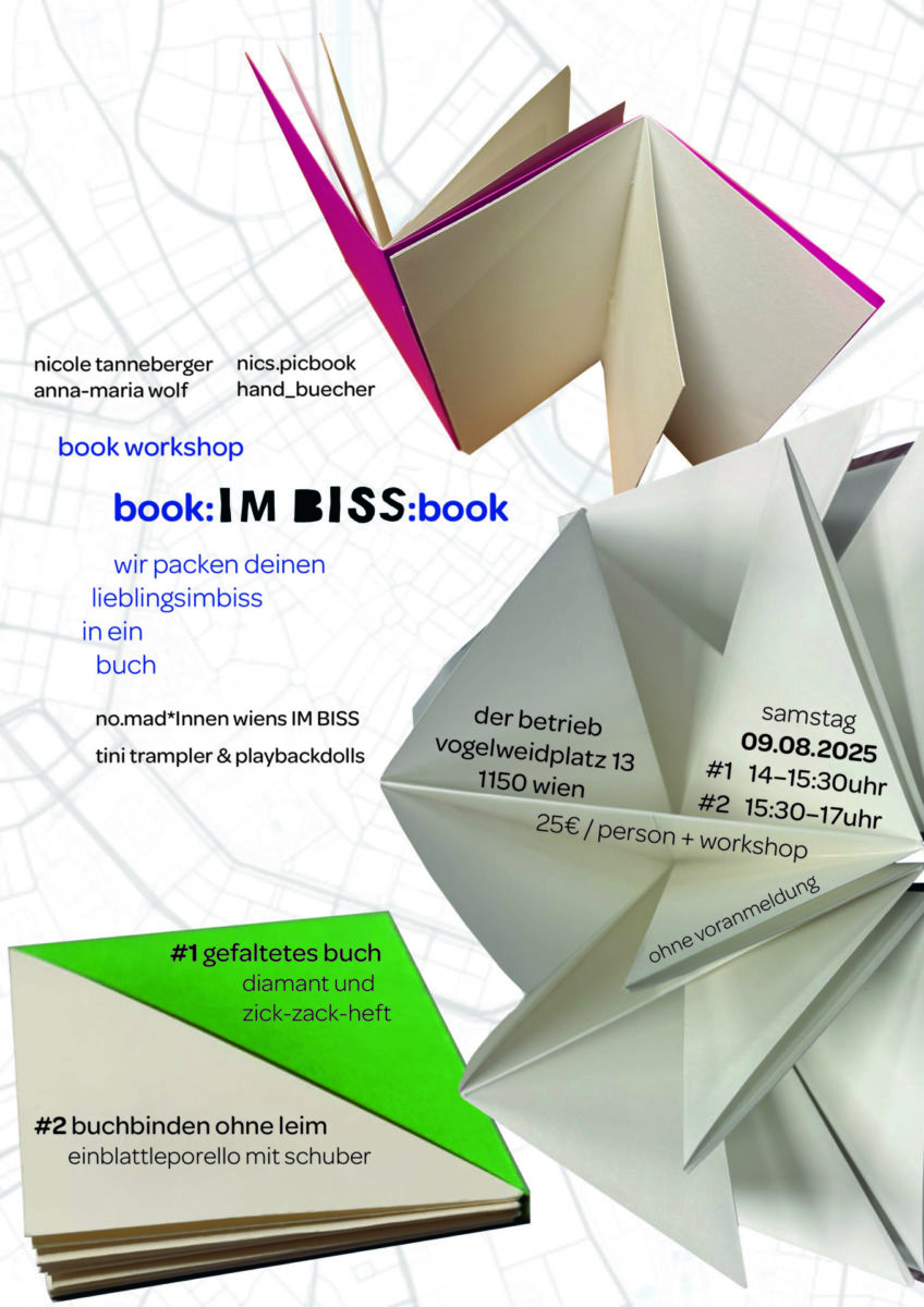 - Samstag 9. August: Buchworkshop book: IM BISS :book