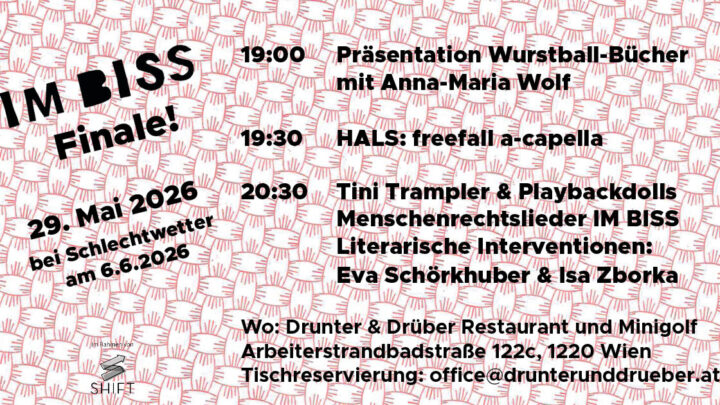 Die Imbisse in Wien werden die Bühnen für ein interdisziplinäres, partizipatives Veranstaltungsformat: Präsentationen der entstandenen Musikstücke und Texte, Konzerte, Lesungen, spoken-word-Performances, Kunstaktionen und ein open-mic.